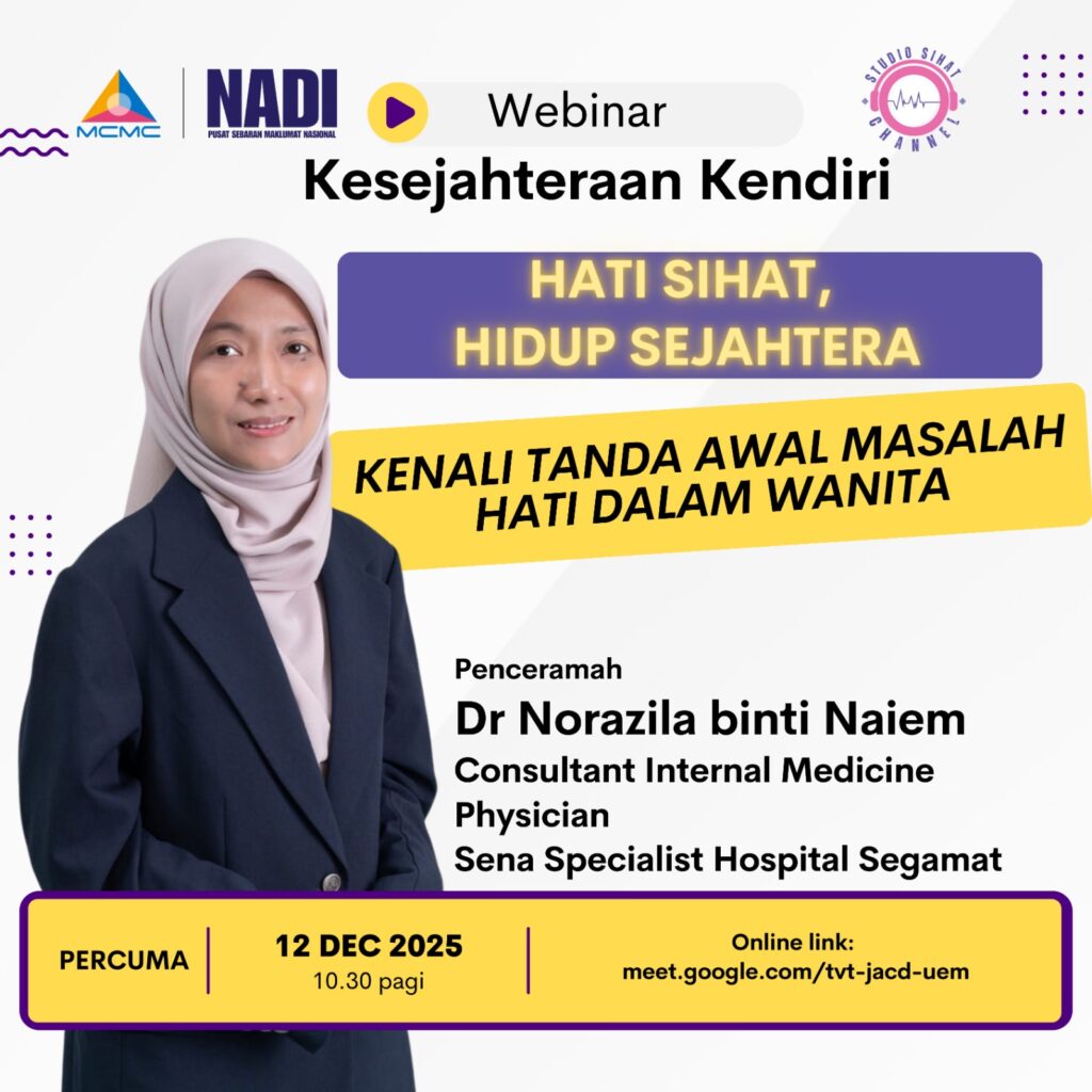 NADI X Wellbeing : (CARE) Webinar Hati Sihat, Hidup Sejahtera – Kenali Tanda Awal Masalah Hati Dalam Wanita | Dr Norazila binti Naiem, Consultant Internal Medicine Physician