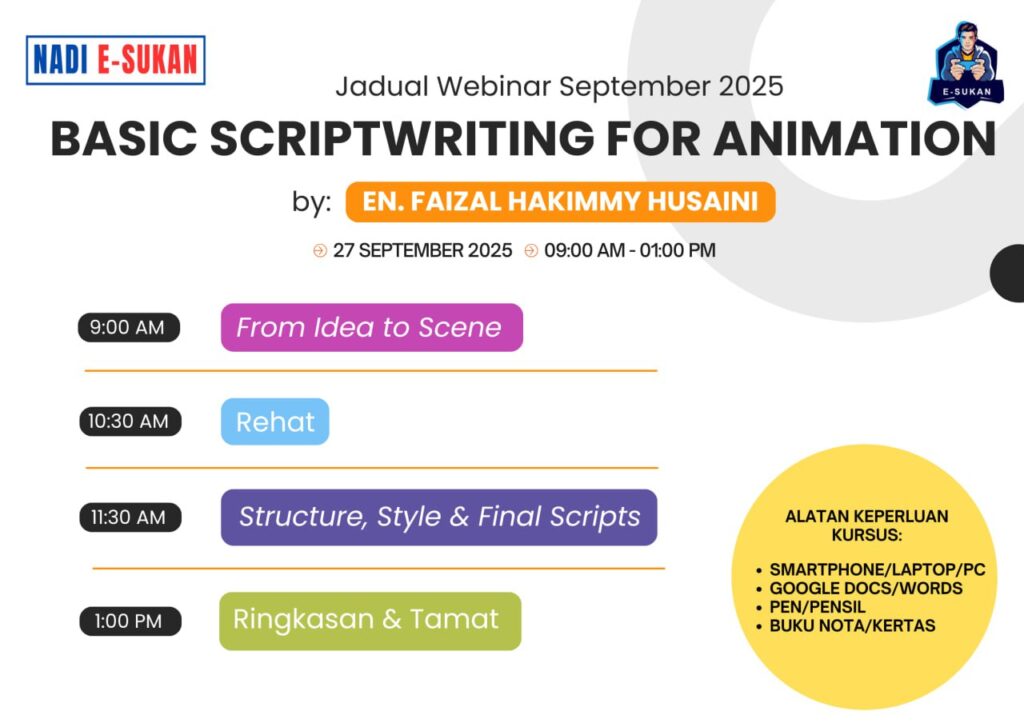NADI X Lifelong Learning : e-Sukan – Webinar Basic Scripwiting For Animation