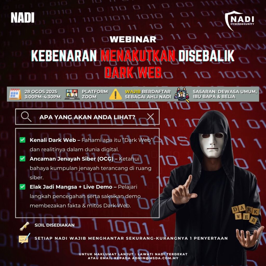 NADI X Lifelong Learning – Webinar Cybersecurity : Kebenaran Menakutkan Disebalik Dark Web