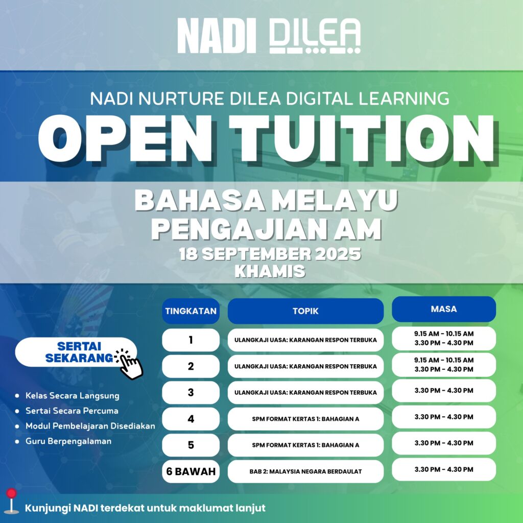 NADI X Nuture : (DiLea) Program Open Live Class Bahasa Melayu (Form 1-4 | September)
